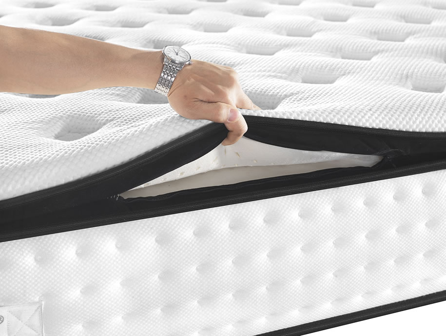 3、舒适层是天然乳胶,乳胶是由天然乳胶原液制成,每一立方英寸有25万个细孔,而每个细孔之间则相当于一个点状弹簧,具有更好的身体顺应性和压力回弹性,能理想地支撑身体。同时,其均衡一致、内部相连的开放式蜂窝结构可以提高通风透气性。乳香味可防虫、驱虫、催眠作用,手感细腻,记忆身体曲线,拉伸力强,永不变形。